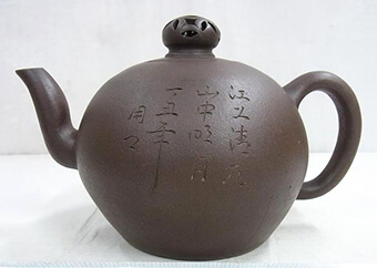 今回の紫砂壺は、側面に詩が刻まれた情緒ある大圓壺です。
