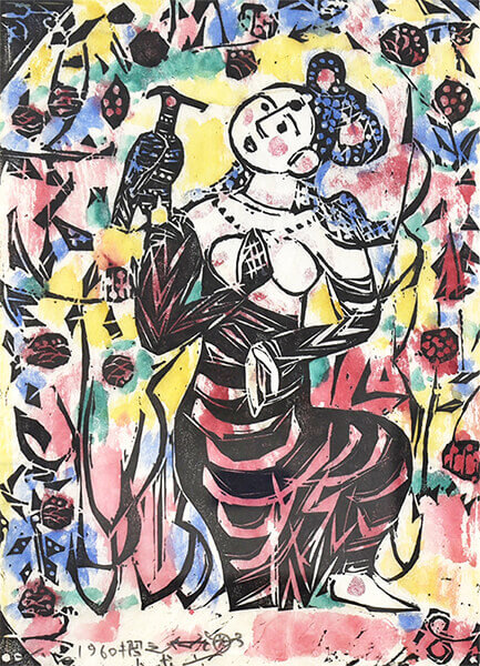 棟方志功は、生涯の中で女性像を数多く手がけ、その中には鳥を配した作品もいくつか制作しています。