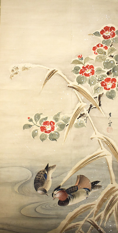 下関に生まれ、江戸に出て狩野勝川に師事し、従来の狩野派の技法に西洋画の技法を取り入れ、新しい日本画の領域を開拓しました。