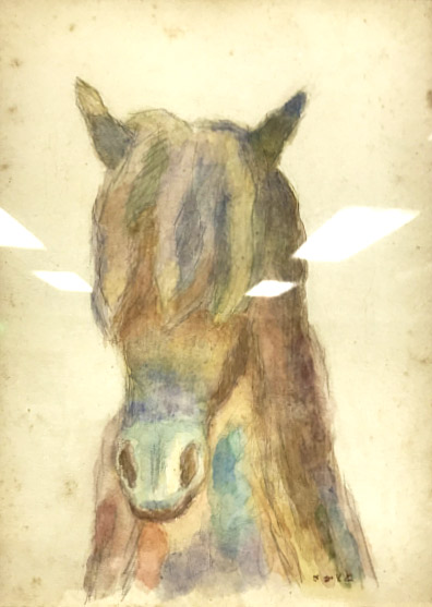 今回の作品は、柔らかく明るい色彩で、馬の顔の正面をとらえた作品です。