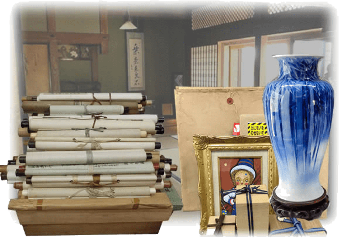 掛軸・絵画・着物・茶道具・陶器・中国美術などの有名作家の作品から古書にいたるまで、ご満足いただける買取りを行います。