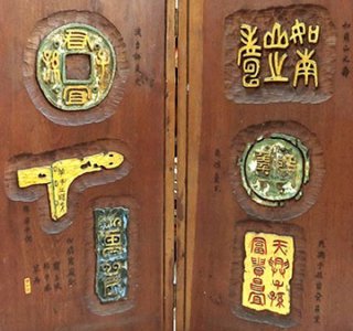 紫檀 黄楊杢彫刻象嵌硯屏です。 硯屏(けんびょう)は硯の頭の方に置いて、ちりやほこりなどを防ぐ小さな衝立のことです。 中国の文人が机を飾るために使用した装飾品でもあり、紫檀の枠に彫刻を施した石...