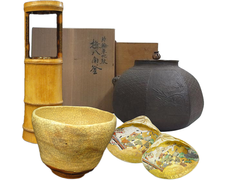茶道具と一口にいっても、種類や格は様々。高価な茶碗はもちろん、お稽古用の茶道具も含め、いろいろなお道具類の取扱いが可能です。
