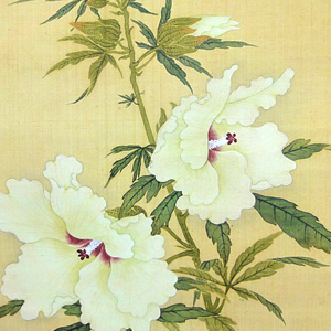 花鳥画には、花や鳥、魚、虫、草木、小動物、鳳凰などの瑞鳥などが描かれています。中国花鳥画では、吉祥の意味をもった対象を描く文化があります。牡丹図は富貴の象徴として、鯉図は男児の成長を願う場合に描かれ、贈答品とされます。