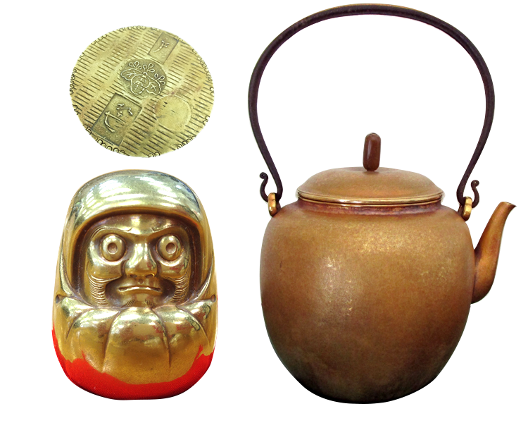 金瓶・仏像・インゴット・コイン・金杯・大判・小判・金縁のメガネ、金の鈴、アクセサリーなど金製品