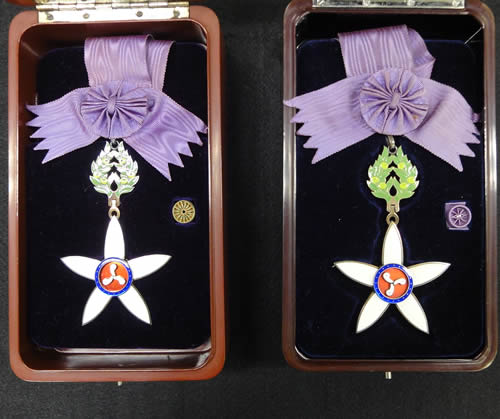 大勲位菊花大綬章 /桐花大綬章 /旭日大綬章 /瑞宝大綬章 /宝冠大綬章 /文化勲章 /旭日重光章 /瑞宝重光章 /宝冠牡丹章 /