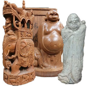- 象牙や珊瑚・翡翠などの彫刻品、木彫の置物