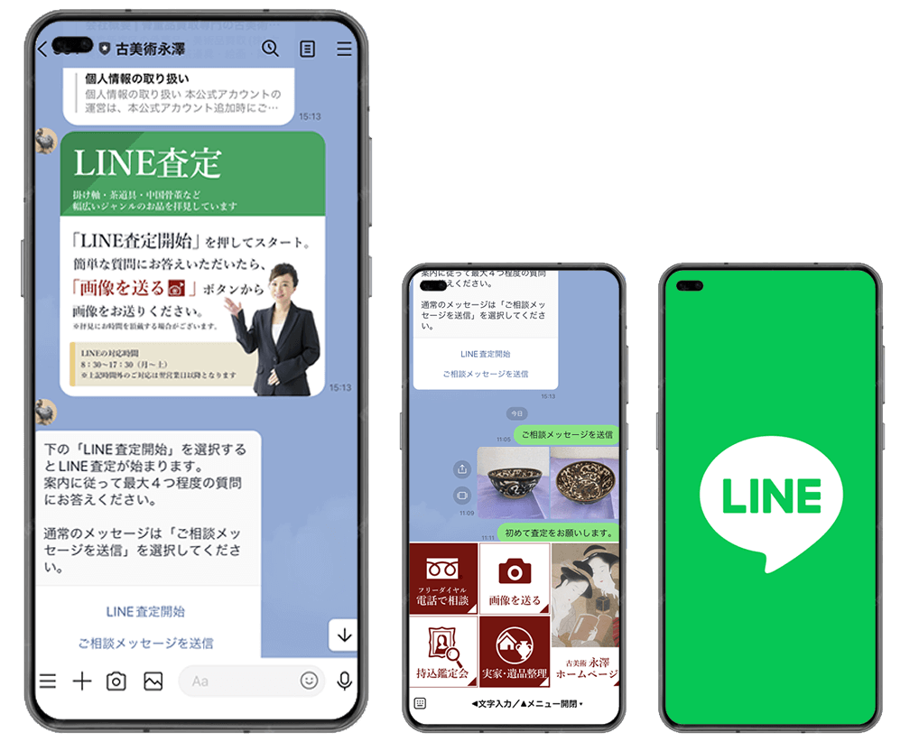 価値を知りたい掛軸・絵画・茶道具・陶器・骨董品などがございましたら、お気軽に画像とお品物の情報をお送りください。